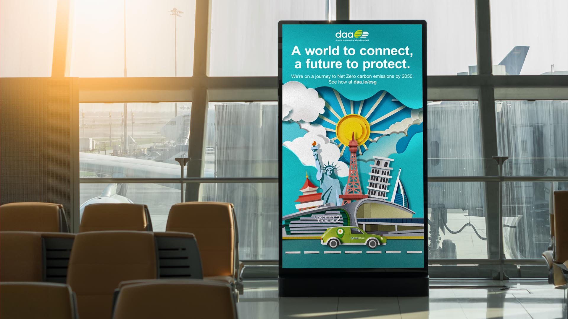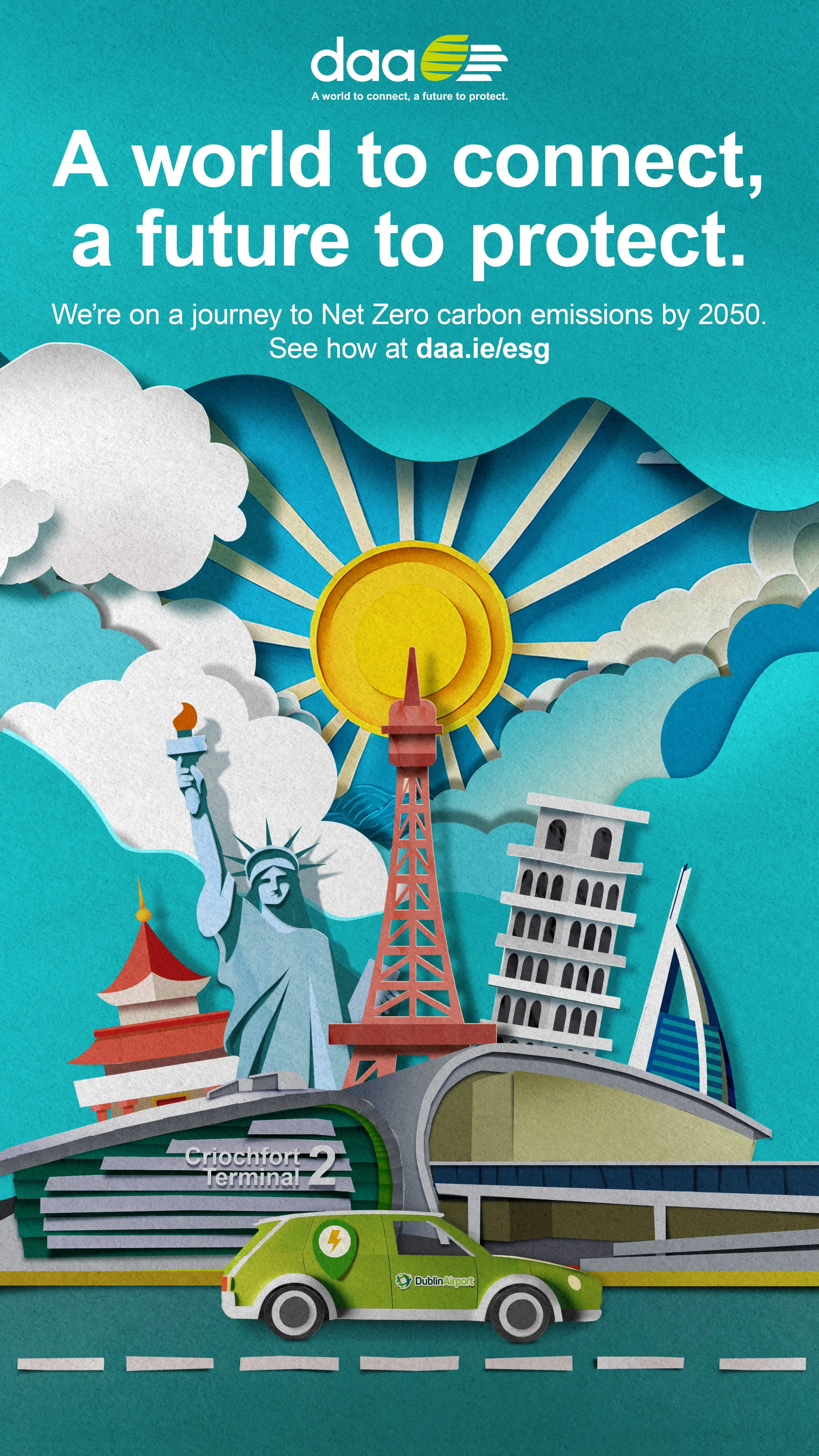 Working with the DAA to visually communicate their sustainability drive, I designed these papercut style creatives which were later animated by Barbara Masson using After Effects in studio. The campaign is running consistently across all digital screens at Dublin Airport and was ater translated into a guidebook for print.